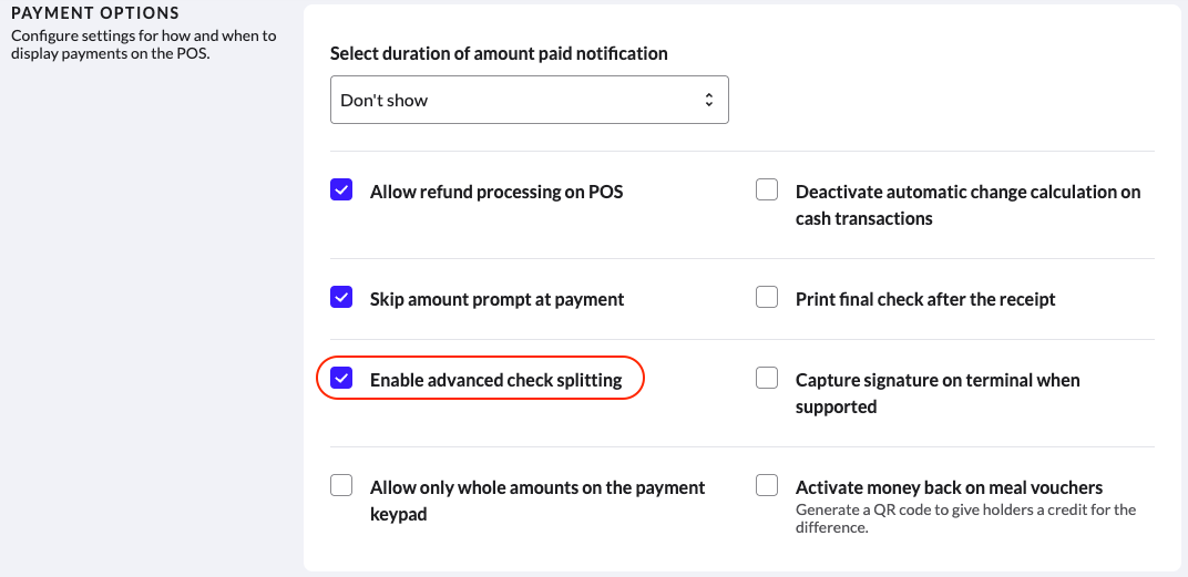 - Empfohlenes Trinkgeld auf Quittungen: Trinkgeldvorschläge werden als feste Beträge, Prozentsätze oder eine Kombination aus beidem basierend auf einem anpassbaren Schwellenwert angezeigt.