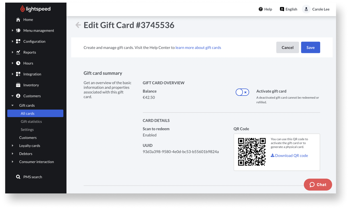 Diese Anweisungen gelten nur für die neue Version der Lightspeed-Geschenkkarten. Wenn Sie die vorherige Version der Geschenkkarten nutzen und zur neuen wechseln möchten, befolgen Sie die Anweisungen in unserem Artikel Geschenkkarten 2.0 einrichten.