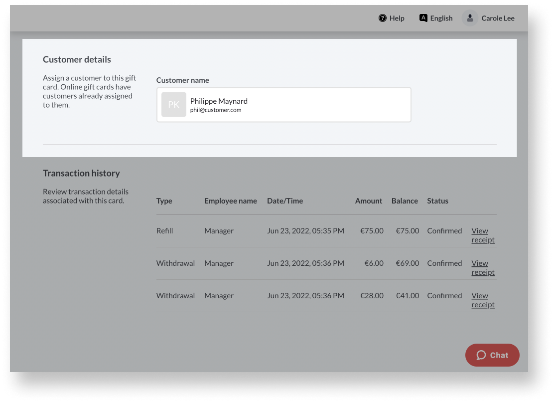- Transaktionsverlauf und Transaktionsbelege einer Geschenkkarte anzeigen