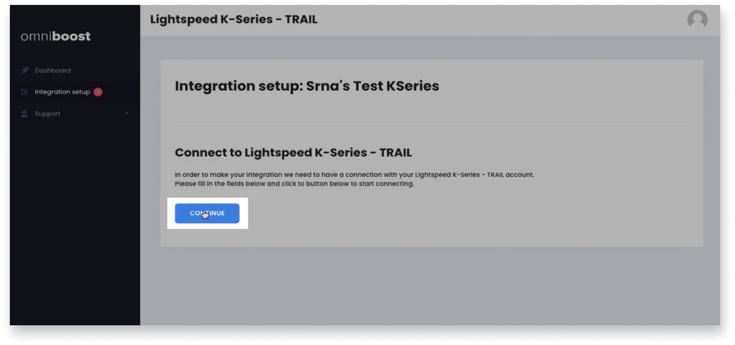 - Klicken Sie auf Continue (Fortfahren), um zu Omniboost zurückzukehren.