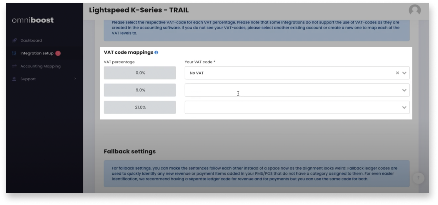- Befolgen Sie die Anweisungen im Abschnitt Integrationseinstellungen vervollständigen, um mit dem Einrichten der Omniboost-Buchhaltungsintegration fortzufahren.