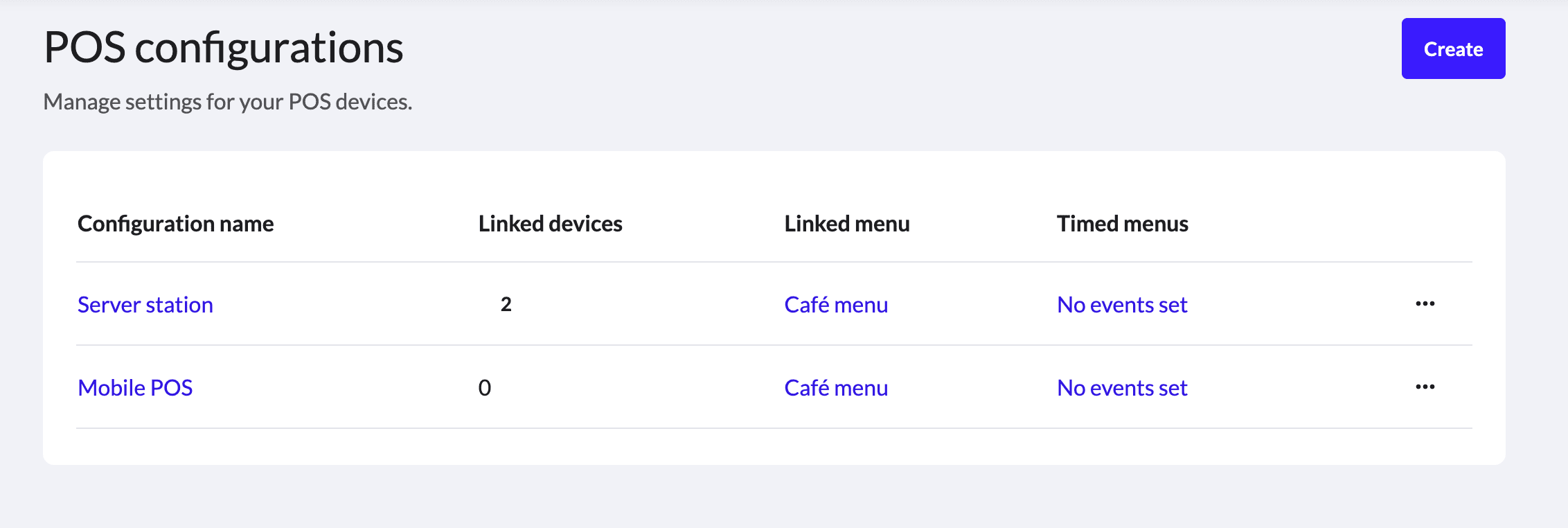 • Click More actions > Delete to remove outdated or unused POS configurations. The configuration must have no linked devices for this to be possible.