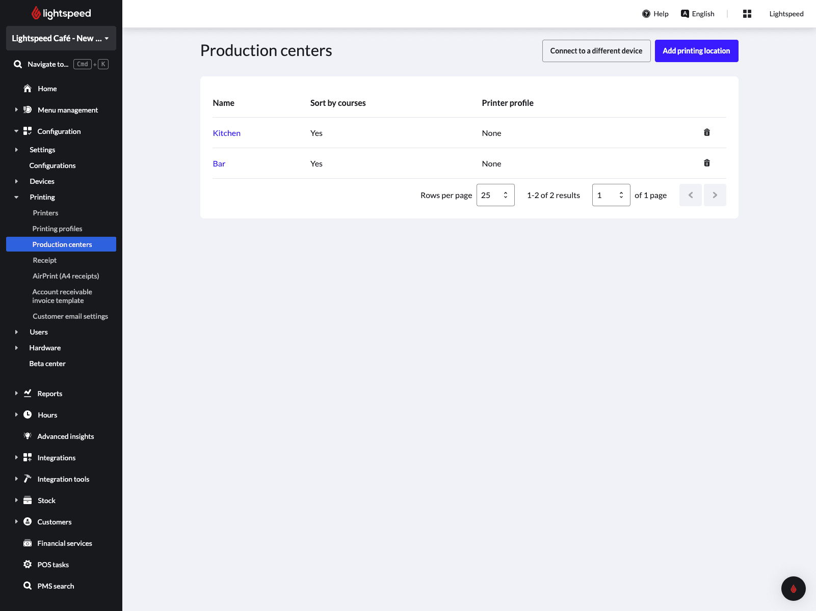 Les centres de production sont l’un des trois éléments essentiels qui garantissent la capacité d’impression de votre système de caisse. Un centre de production désigne la destination d’impression des bons de commande pour la préparation. C’est pourquoi vous les retrouverez souvent en cuisine ou au bar.