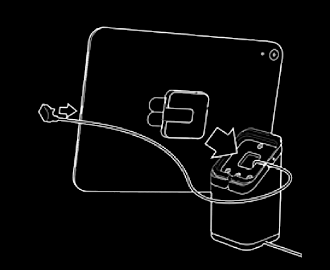 Votre câble d’alimentation USB-C doit rester branché pour que votre support pour iPad puisse charger votre iPad. Si le câble est débranché du support pour iPad, la charge de l’iPad s’arrête. L’affichage d’un symbole en forme d’éclair sur l’icône de la batterie confirme que votre iPad est bien en charge.