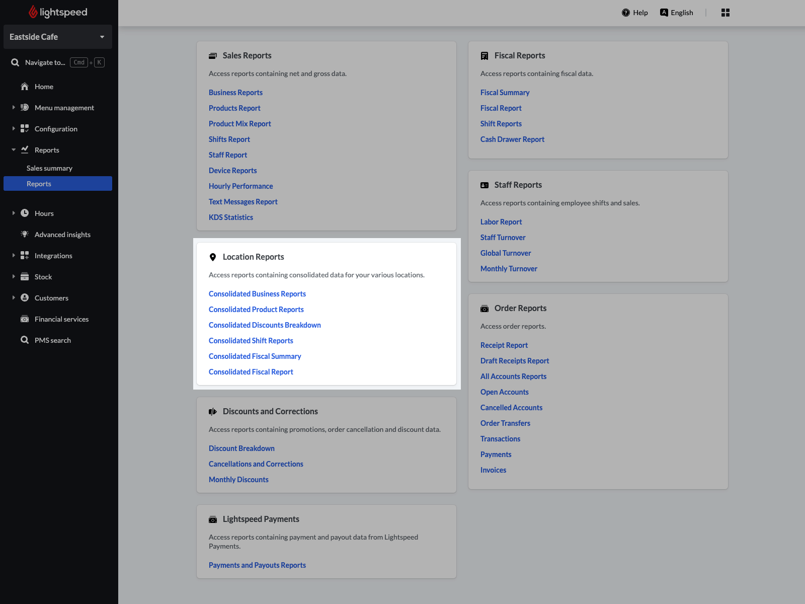 Pour accéder aux rapports d’établissement, connectez-vous à l’arrière-boutique et accédez à la section Rapports > Tous les rapports.