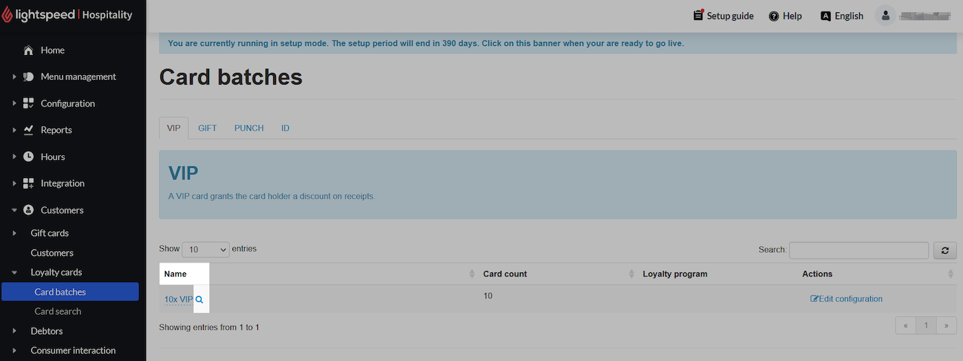 Pour trouver une carte VIP en particulier, par exemple pour la modifier ou la révoquer, utilisez la fonction de recherche afin de filtrer les cartes disponibles.