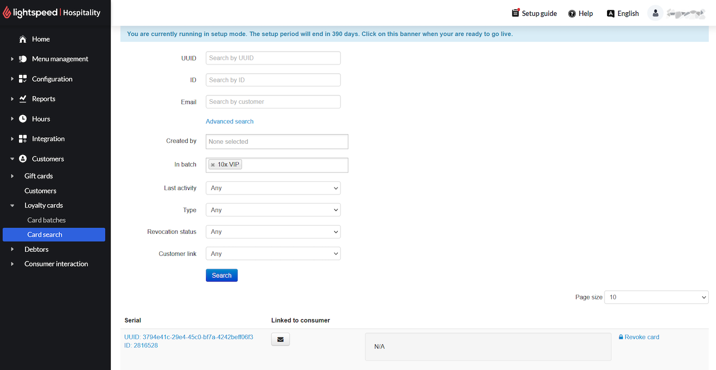 | Dans le lot | Si vous avez plusieurs lots de cartes générés, ce champ vous permet de trouver une carte en sélectionnant le lot auquel elle appartient. |