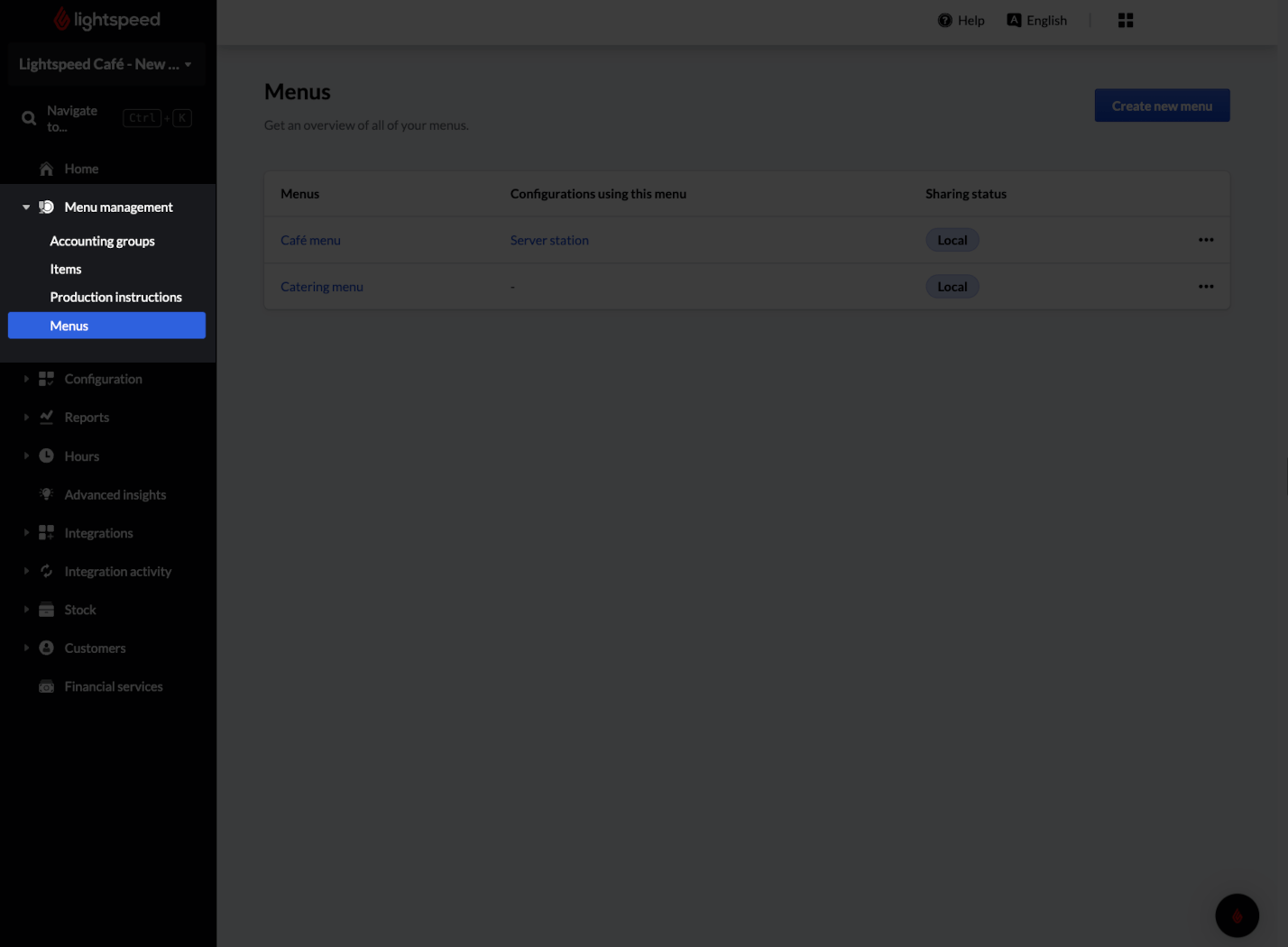 - Menubeheer: Menu's bepalen welke items beschikbaar zijn om te bestellen op de POS. Met meerdere menu's kun je specifieke menu's toewijzen aan bepaalde POS-apparaten (zoals een drankenmenu voor het barapparaat) of aparte menu's instellen voor verschillende etenstijden of locaties, die vervolgens kunnen worden gedeeld door je meerdere locaties.