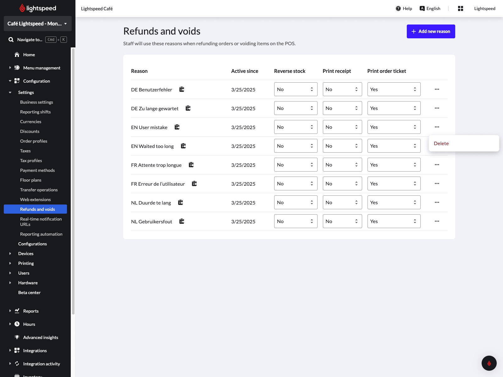 De annuleringsreden is nu zichtbaar in de backoffice en komt beschikbaar in de POS zodra de POS-configuratie wordt bijgewerkt.