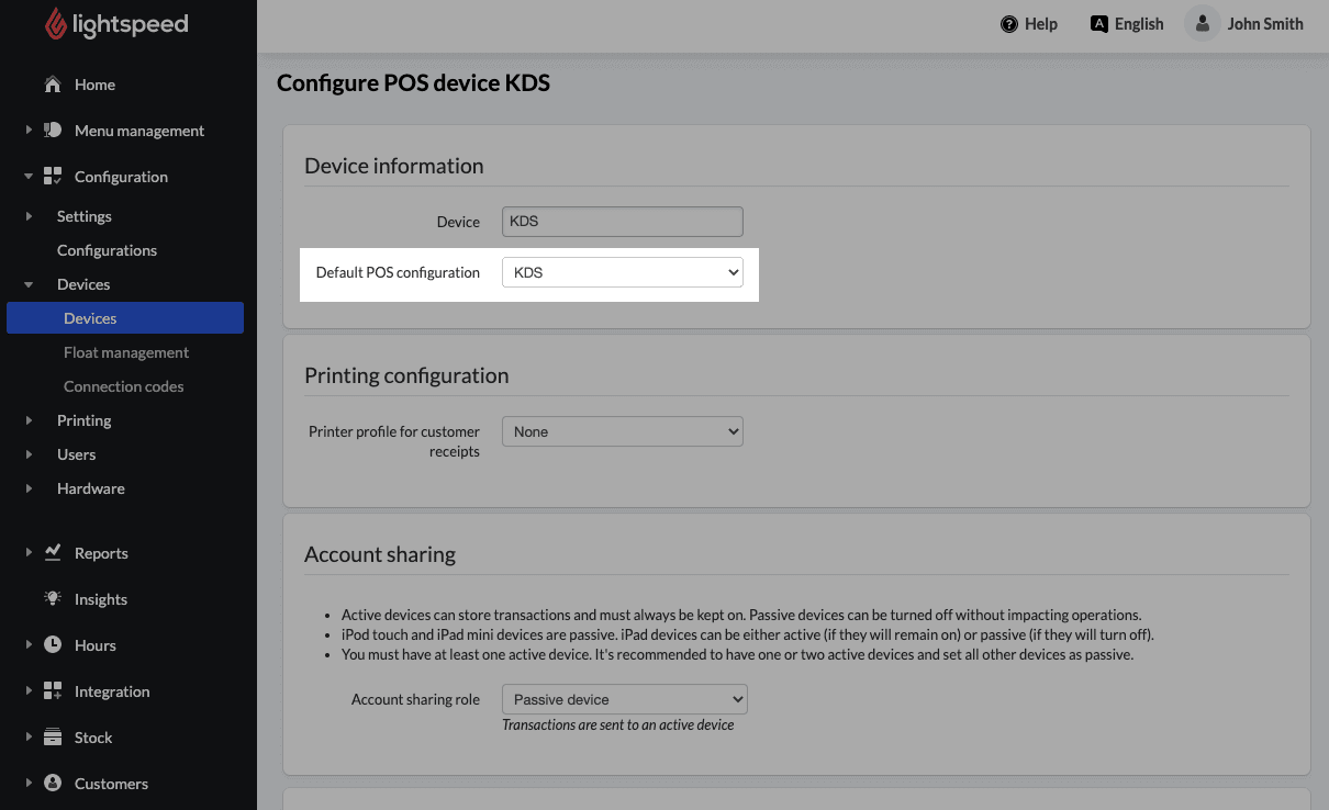 - (Optioneel) Voltooi de stappen in Filters van het KDS en/of KDS-printinstellingen configureren om deze functies voor het KDS te configureren.